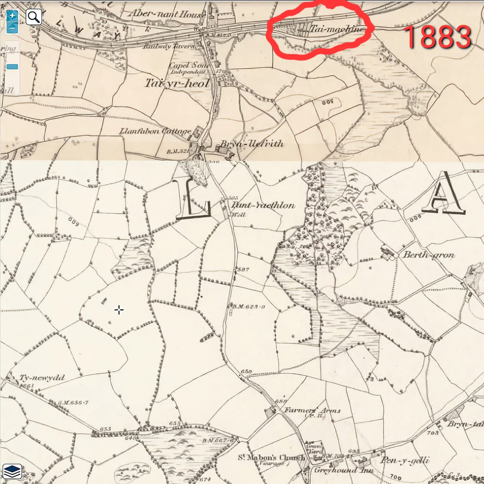 The Tai Machine House, a building connected to the railway that was demolished in the late 20th century, It was named after a machine for knitting socks, invented by William Burson and Nelson, which produced 80 pairs a day by 1871, with the Nelson Knitting Company later becoming known for its “Red Heel” socks. The Tai Machine House was a local landmark in Nelson, Wales, connected to the history of the railway and the former textile industry.